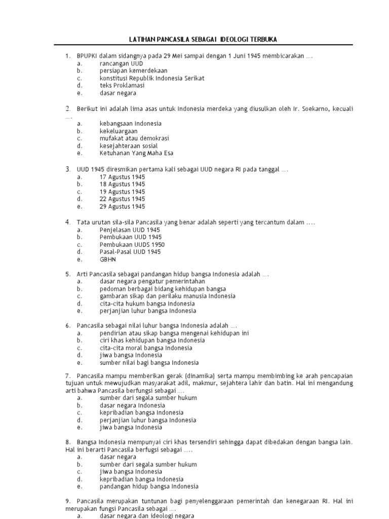 Soal Pancasila Sebagai Ideologi Terbuka